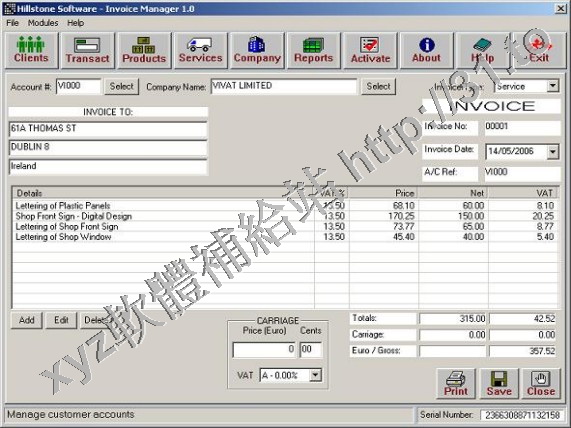 Hillstone Invoice Manager v2.1.03 英文正式版(賬戶管理軟體)