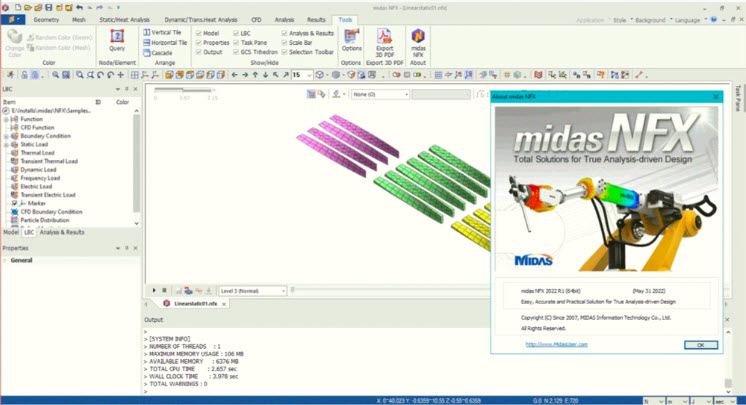 midas NFX為使用者提供包含從高端結構分析功能(諸如接觸分析、非線性分析、隱式/顯式動力學分析以及疲勞分析)到高端流體分析功能(移動網格、自由表面分析、組分擴散分析、顆粒分析、電子線路發熱分析等)的全面解決方案。