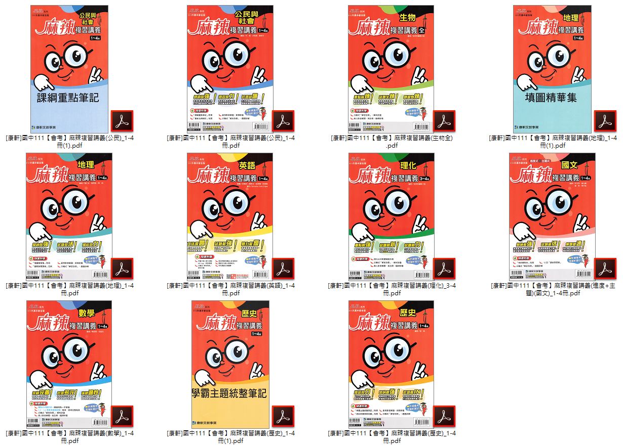 • 110年國中會考 康軒 麻辣 總複習講義 全科目 講義光碟