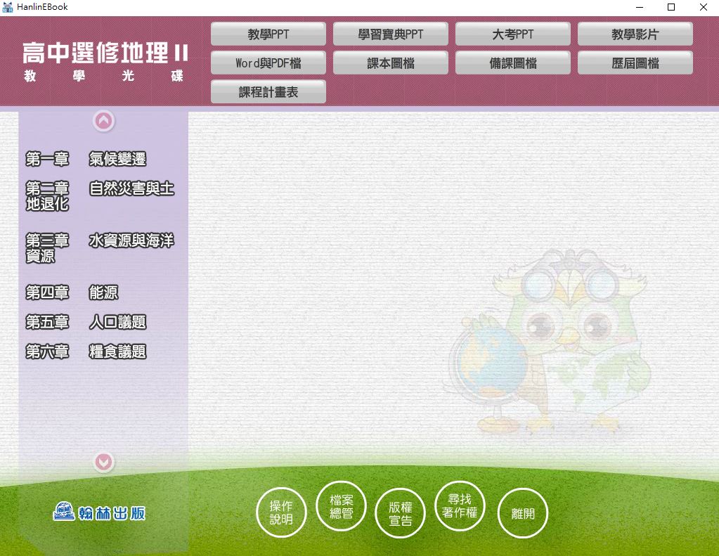 110學年上學期 高中 翰林版 選修地理(II) 教學光碟