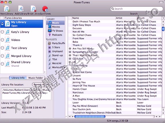 PowerTunes幫助用戶自主創建多個iTunes libraries並支援將音樂文件分類管理.自