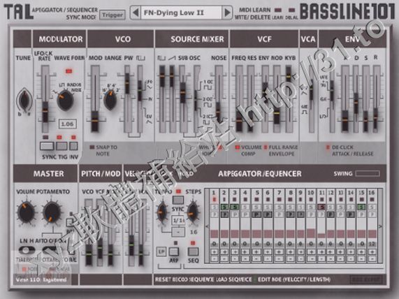 TAL-BASSLINE的-101是一個單聲道的低音採用了經典的模擬聲音合成器。 GUI是直觀和易於使用。
