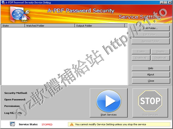 A-PDF Password Security Service程式在系統的後臺運行,它可以監視你的特