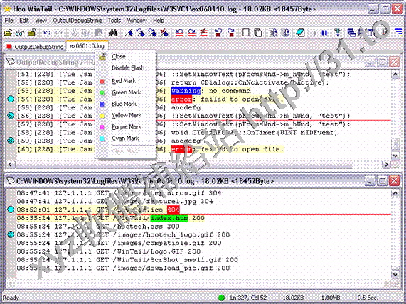 文件、.xls文件,或者其他特別文件。Hoo WinTail也可以捕捉並顯示OutputDebugString