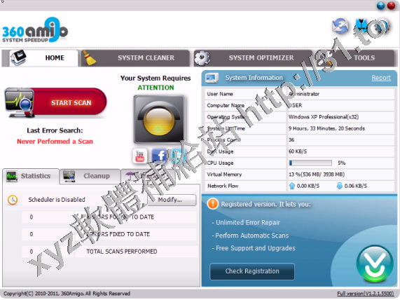 • 360Amigo System Speedup v1.2.1.6000 英文正式版(最佳化和錯誤修復工具,大大提高了電腦的性能軟體)
